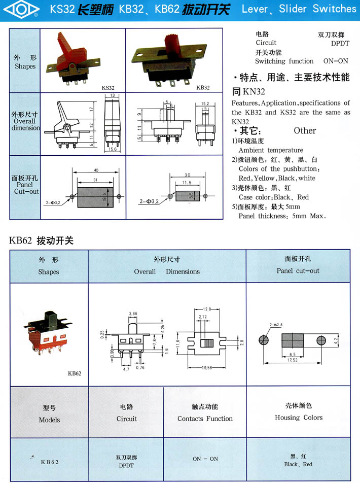 • KS32/KB32/KB62拔動開關(guān)系列 產(chǎn)品型號:KB62